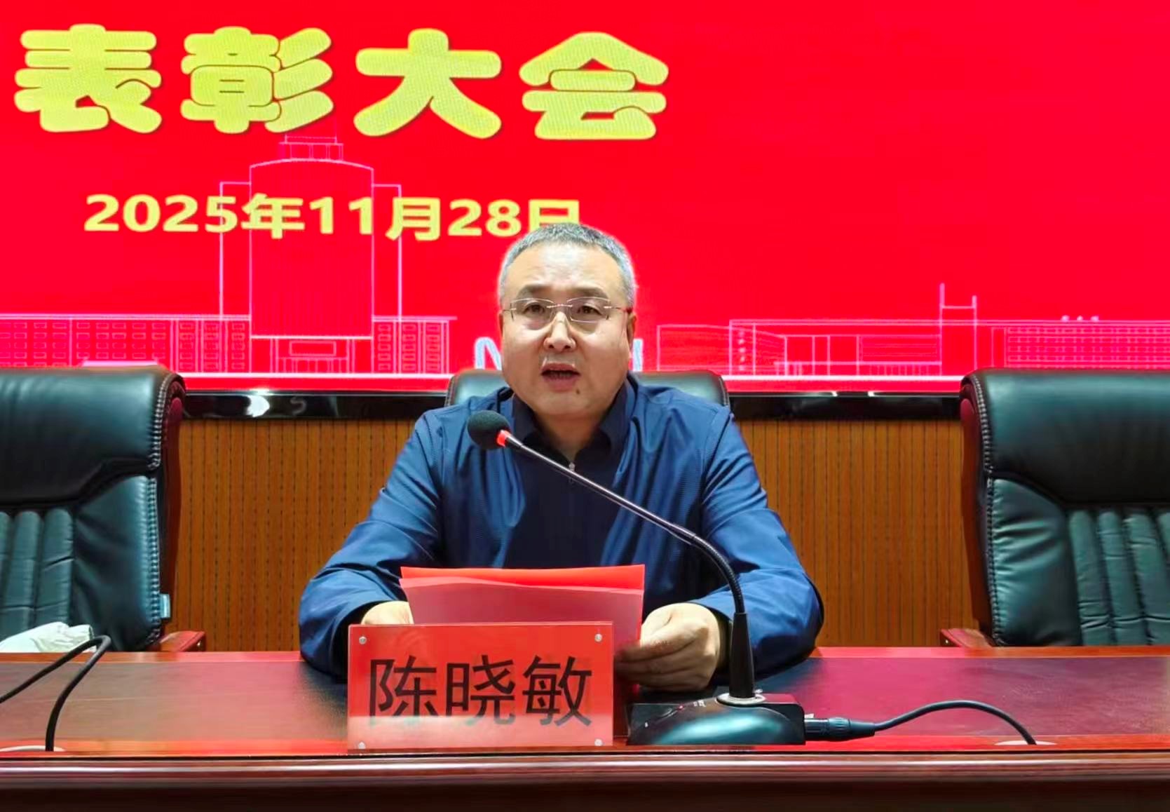 大会伊始,全体参会人员起立奏唱国歌,庄重的旋律拉开了表彰大会的序幕。