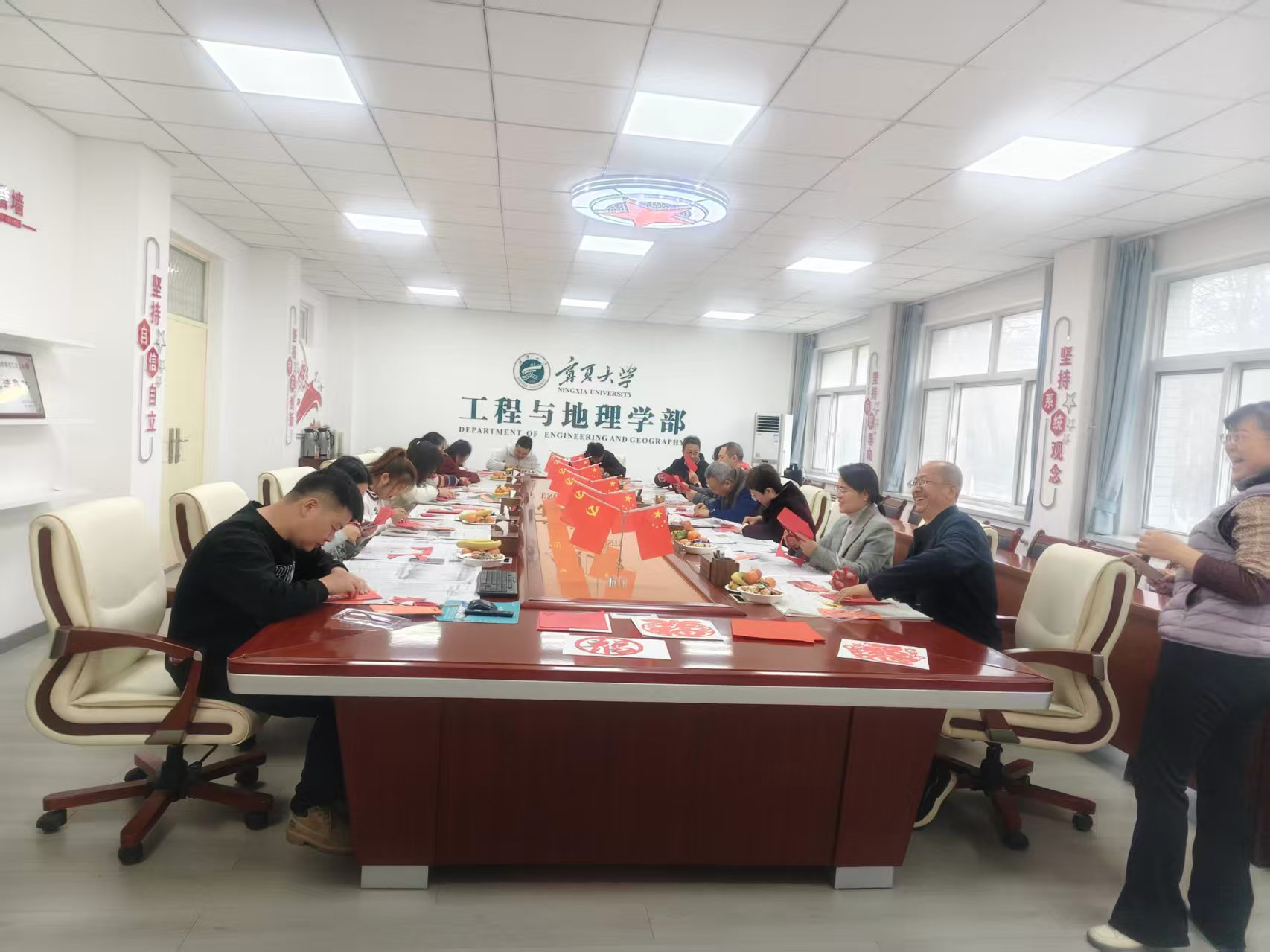 岁末辞旧,华章日新。为丰富教职工文化生活,增强团队凝聚力,营造欢乐祥和的节日氛围,12 月 31 日上午,工程与地理学部举办“剪韵迎新 筑梦学部新程” 迎新年剪纸团建活动。学部班子成员、土木与水利工程学院班子成员、校工会副主席、学部全体教职工欢聚一堂,共赴这场充满传统韵味的指尖之约。